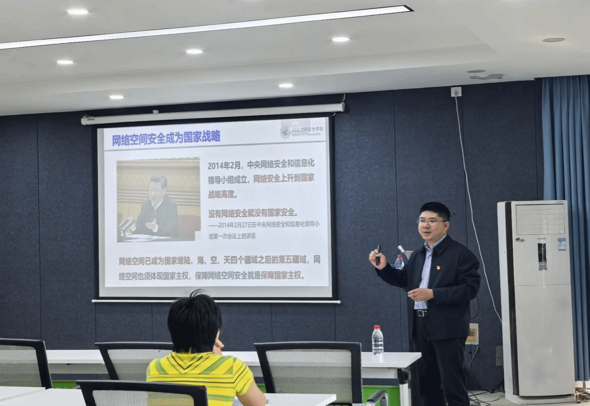 胡伟教授以“走进网络空间,守护国家安全”为题,阐释理论、解析案例,从网络空间安全的战略高度、网络空间的安全威胁、互联时代的安全挑战、智能时代的安全对抗、安全保密典型案例等五个方面,系统讲解了个人信息保护、网络行为规范等安全知识。他强调,网络安全是国家安全的重要组成部分,广大师生党员要将个人成长与国家安全紧密结合,主动识别身边的安全隐患,在日常生活中发挥先锋模范作用。最后,师生进行了互动交流,通过网络安全教育,提高安全责任意识,引导大家树立正确网络安全观,提升了安全防范能力。