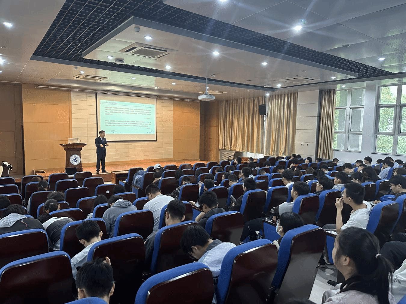 报告厅开展“青年当自强,中华勇担当”主题教育宣讲会,宣讲会由学校工大青年宣讲团成员王力泉进行分享。学院研究生辅导员、预备党员、发展对象、入党积极分子、青年团员参加了本次会议,会议由党委组织员杨文琪主持。