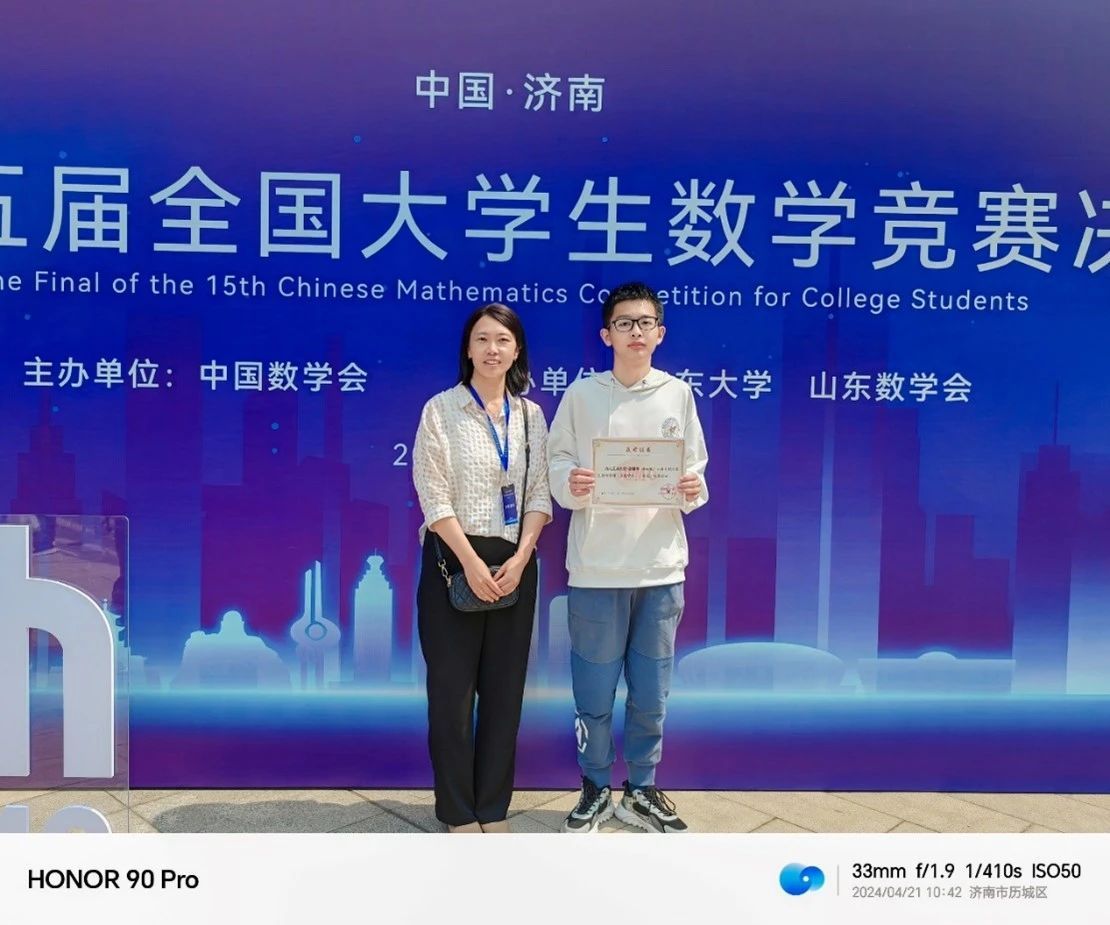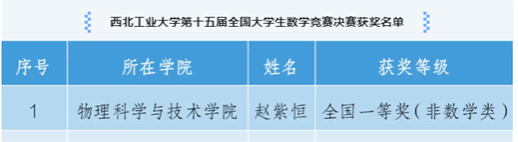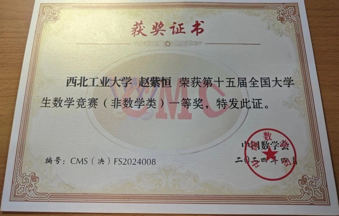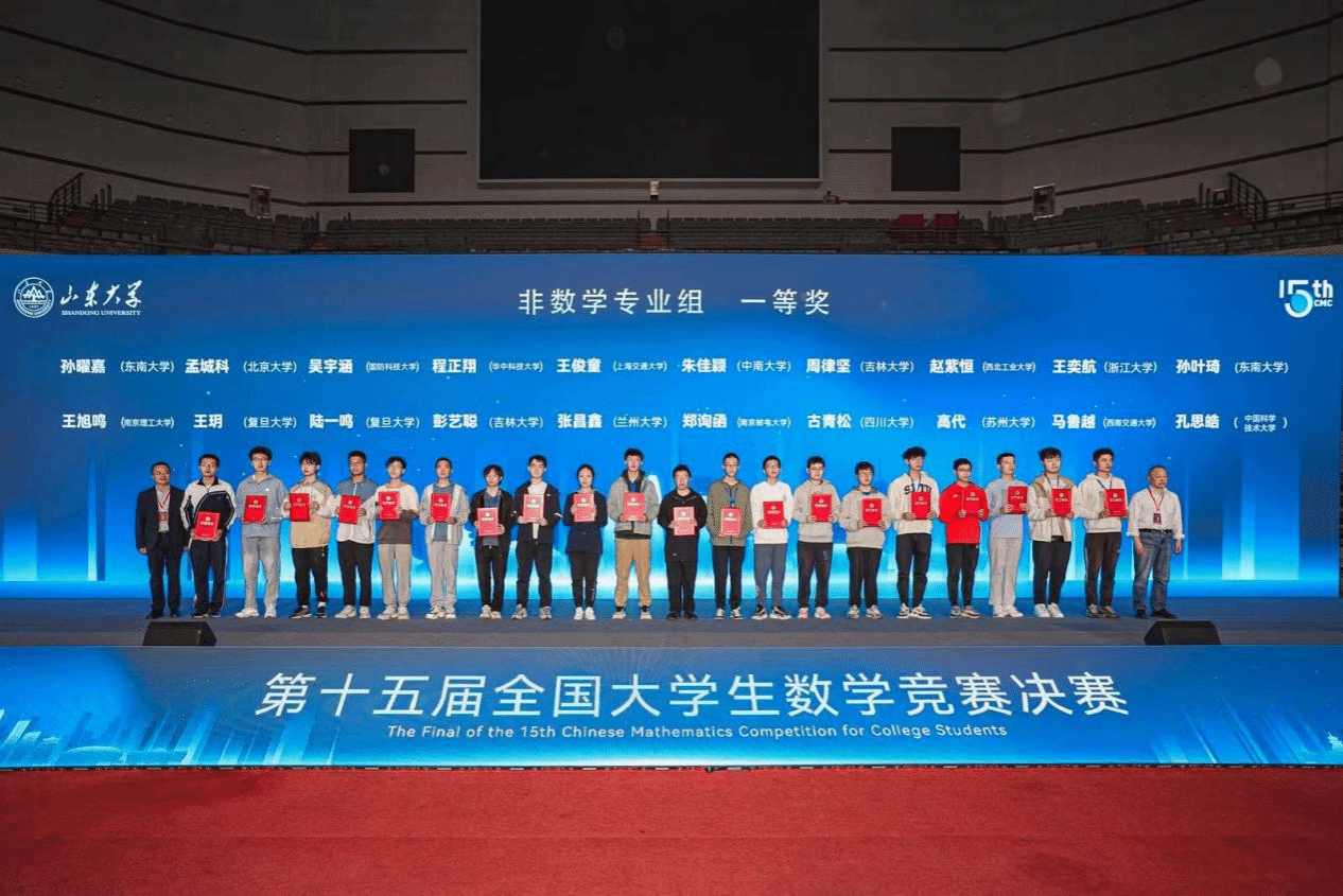 近日,第十五届全国大学生数学竞赛决赛落下帷幕。本届大赛吸引了北京大学、中国科学技术大学、复旦大学、清华大学等一千余所高校,28万余名学生参赛,一等奖获奖比例为万分之8,二等奖获奖比例为万分之12,获奖难度极大。我校10名同学入围决赛,并全部获奖。其中,我院2023级本科生赵紫恒同学荣获全国一等奖(非数学类)(94.5分全国第八,陕西省第一)。