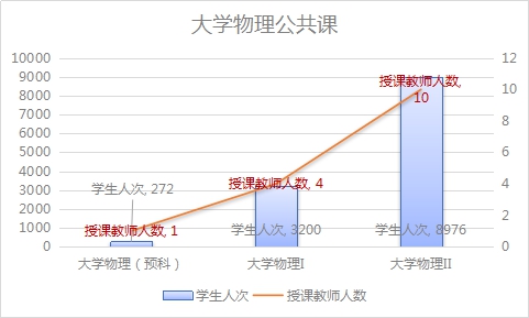 开课以来,我院共计开课29门,其中包含全校公共课程:大学物理(预科),共计1班,2门次;授课教师1人,2人次;涉及学生68人,共计参与网络授课学生272人次。大学物理I,共计5个班,10门次;授课教师4人,10人次,涉及学生800人,共计参与网络授课学生3200人次。大学物理II,共计14个班,28门次;授课教师10人,28人次;涉及学生2244人,共计参与网络授课学生8976人次。大学物理公共课程共计20个班,涉及学生3112人,8976人次,授课教师15人。专业课程9门,9个班,16门次;3个专业,涉及学生486人,859人次,授课教师8人,16人次。