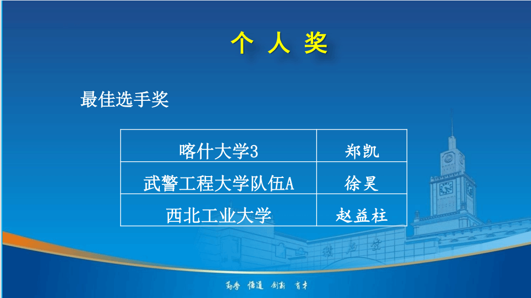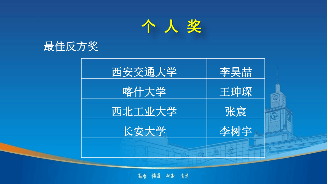 赵益柱同学夺得最佳选手奖(仅3人),张宸同学夺得最佳反方奖(仅4人)。另外,我校还在本届比赛的作品赛赛道中取得特等奖1项、一等奖1项、二等奖1项。基于以上优异成绩,我校成功晋级,顺利取得国赛资格。