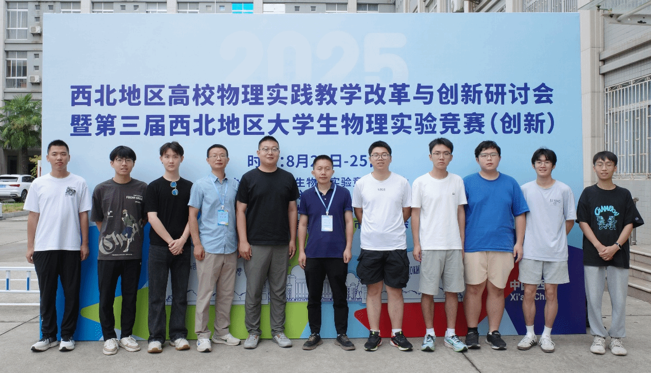2025年8月22-25日,第三届西北地区大学生物理实验竞赛(创新)决赛在陕西师范大学长安校区举行。本届大赛由全国大学生物理实验竞赛组委会西北地区分委员会主办,陕西师范大学与西安交通大学承办。大赛自启动以来,受到各地高校师生的广泛关注,吸引来自59所学校的536支队伍参与竞赛。在本次比赛中,我校有11支队伍参加,共获得一等奖5项、二等奖2项、三等奖4项,其中3支队伍获得“直通车”资格,直接晋级国赛决赛。