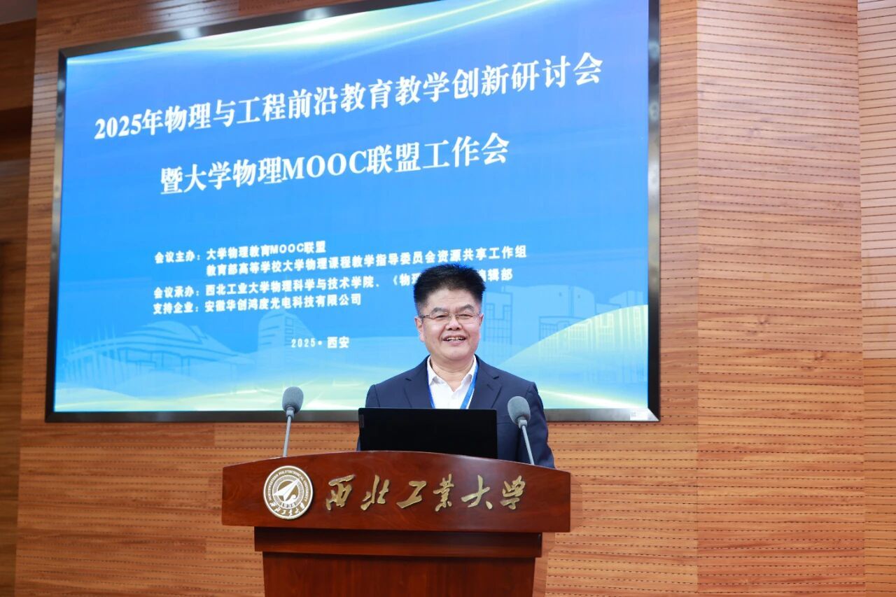 的办学特色。他表示,学校始终高度重视基础学科发展,物理与工程前沿教育教学作为基础理论与尖端科技的桥梁,不仅能激发学生的探索与创新精神,更能培养学生解决复杂工程问题的能力,在物理人才培养中发挥着基础性关键作用,希望与会专家能够为学校的教育教学、人才培养和科研攻关提出宝贵建议,助力我校更好地服务国家战略。学校也将以此为契机,与兄弟高校深化合作、资源共享,共同推动物理与工程前沿教育教学持续发展,为物理人才培养与科技进步发展持续贡献智慧和力量。