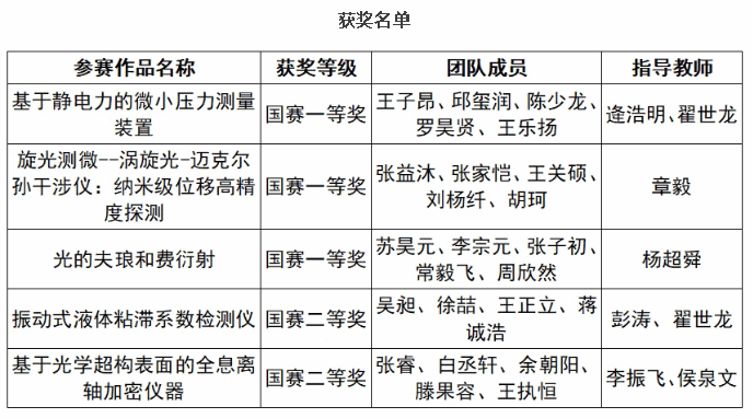 近日,第十一届全国大学生物理实验竞赛(创新)决赛成绩公布,我校3支代表队进入决赛均荣获国赛一等奖,获奖数量与质量位居全国高校前列,创学校在该项赛事中最好成绩。