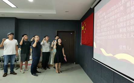 最后,在翟薇副院长的带领下,新进青年教师举行从教宣誓。6名新入职教师举起右拳,进行庄严的入职宣誓,进一步激发了教师的使命感和责任感。