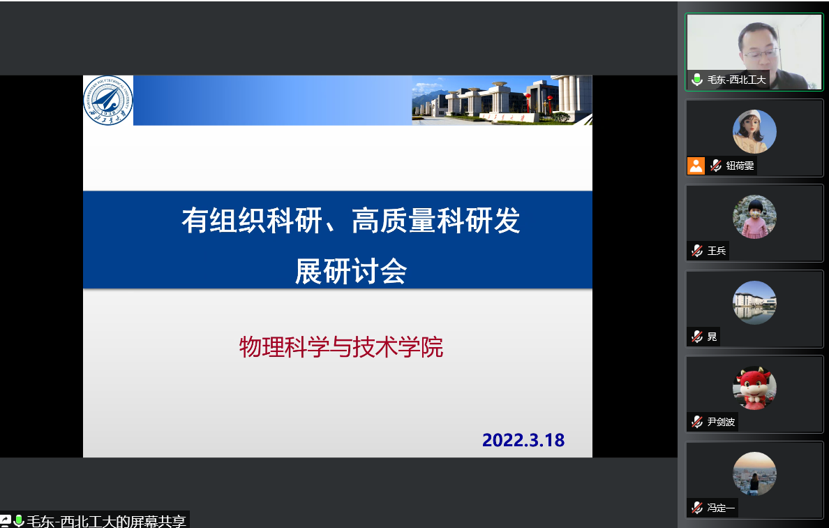 通过线上会议形式开展有组织科研、高质量科研发展研讨会,学院党政领导班子、青年教师共48人参会,会议由科研副院长毛东主持。