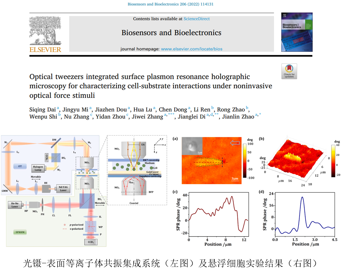 生命学院合作,提出将光镊与表面等离子体共振全息显微镜相集成,以实现光力作用下细胞-基底间相互作用及其变化的全场动态无损测量。相关成果以“Optical tweezers integrated surface plasmon resonance holographic microscopy for characterizing cell-substrate interactions under noninvasive optical force stimuli”为题发表于国际重要学术期刊《Biosensors and Bioelectronics》(DOI: 10.1016/j.bios.2022.114131)上。这是该课题组近期发表于该期刊的第二篇相关工作。直播性爱
