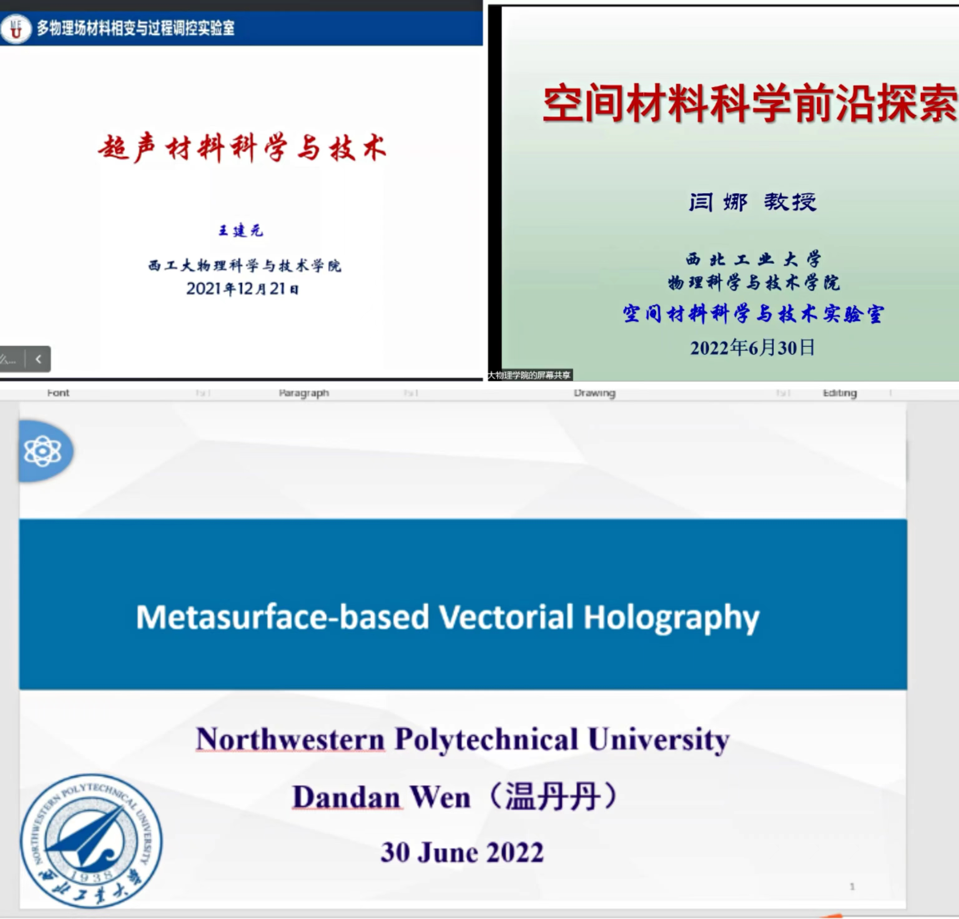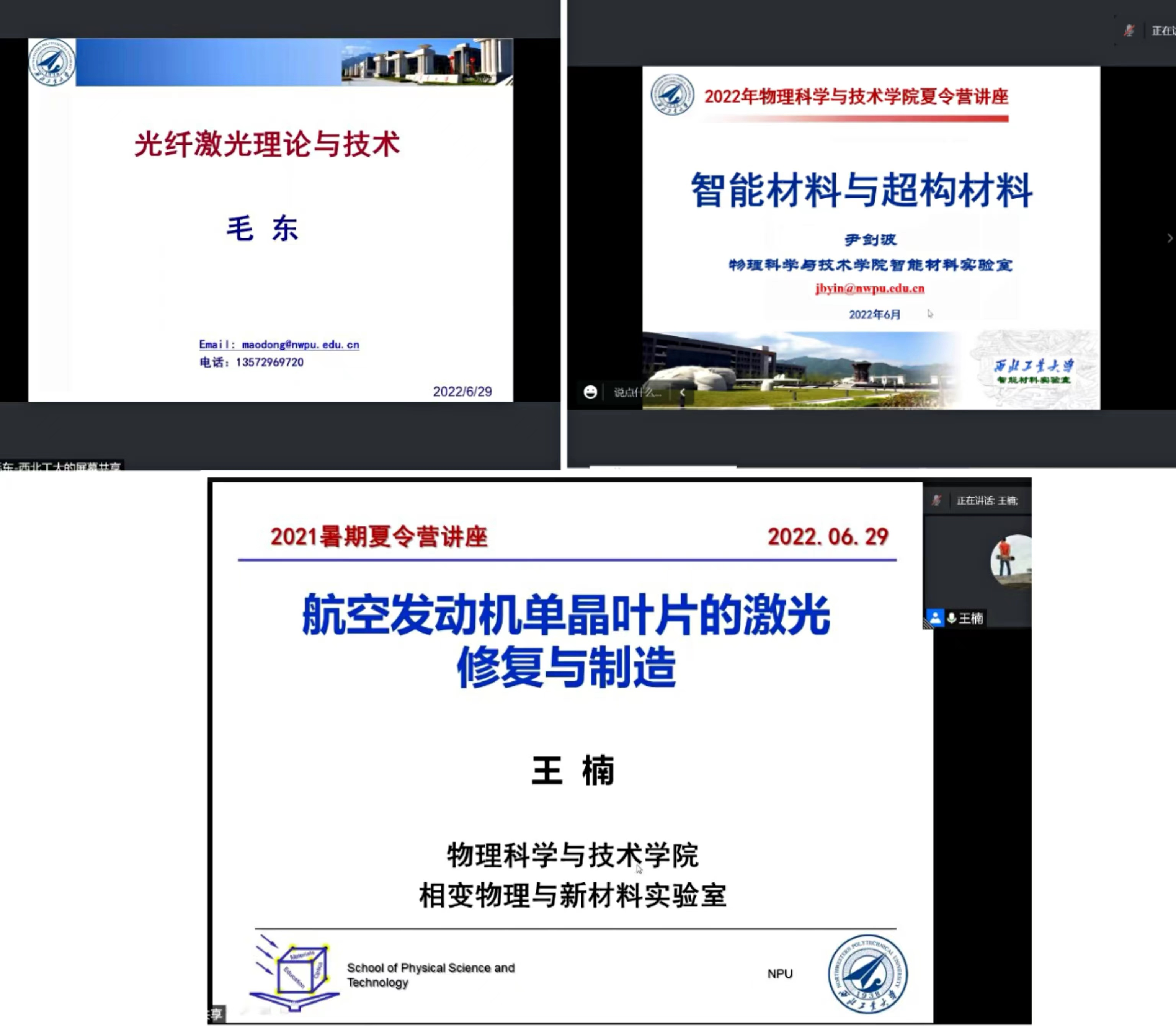 的整体情况。学院邀请在物理学、材料物理与化学和光学工程等多个学科做出突出贡献的10位教授进行了学术前沿讲座。