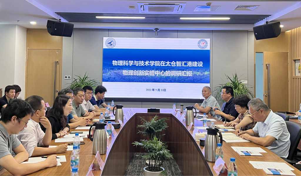 随后,学院一行人与校党委副书记、太仓智汇港党工委书记兼管委会主任万小朋、副主任胡秦、宫健、陈磊、金秉乐、教学运行管理中心主任王海涛等智汇港相关负责人展开座谈交流。副院长毛东、尹剑波分别就学院整体科研情况进展和物理创新实验中心的建设规划做了汇报。接着,双方主要围绕人才培养、科学研究、校企合作、实验平台建设等事宜开展研讨。万小朋书记仔细聆听了情况汇报以及参会教师的成果转化需求,希望学院能够稳抓落实,由点及面,十围之木,始生如蘖,期待与学院在学生实习就业、创新创业、实验平台建设等方面加强合作。翟薇院长表示将以人才培养作为合作的突破口,用好智汇港资源,发挥学院学科优势,共同推进物理创新实验中心建设工作。