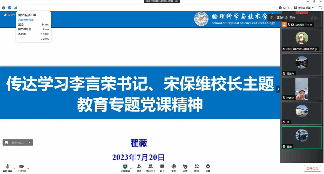 翟薇院长表示,全体教职工要深刻领会李言荣书记、宋保维校长的主题教育专题党课精神,深入学习贯彻习近平新时代中国特色社会主义思想,坚持高标准、严要求,推动学院高质量发展,助力学校“双一流”建设。