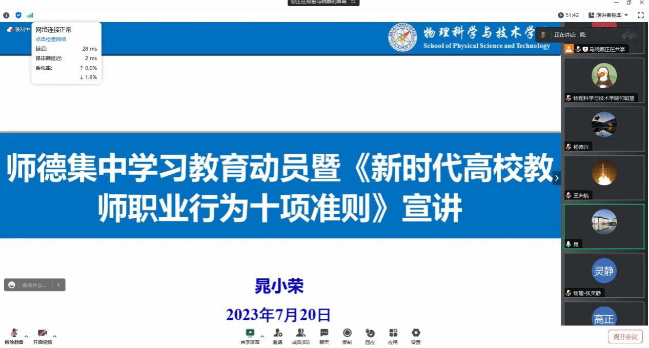 最后,晁小荣书记传达了教育部和学校关于师德集中学习的要求,结合习近平新时代中国特色社会主义思想、习近平总书记关于教育的重要论述和指示批示精神,讲授了专题党课,并对师德集中学习工作任务进行了部署。带领全体教职工学习了《新时代高校教师职业行为十项准则》、《研究生导师指导行为准则》、《直播性爱