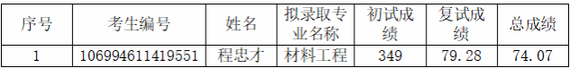 考生朱定强,考生编号106994611212756,主动自愿放弃直播性爱 材料工程的拟录取资格,经学院研究生招生工作小组审核通过,现根据成绩依次候补录名单公示如下: