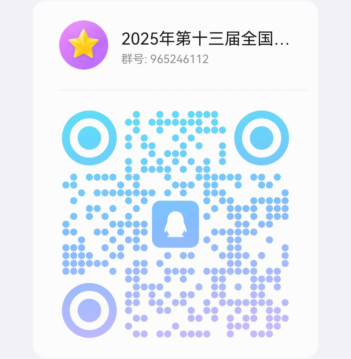 报名方法:为方便开展竞赛交流和通知发布,设置2025年第十三届全国大学生光电设计竞赛QQ群965246112(扫描以下二维码加入),请参赛同学加入并关注群通知。
