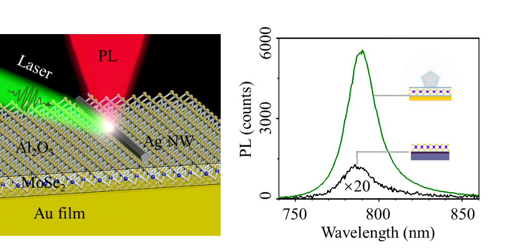 在光场与纳米材料作用方面,赵建林教授、肖发俊教授、甘雪涛教授团队与与中科院西安光机所鱼卫星研究员、北京大学刘开辉教授合作,设计了一种银纳米线-金薄膜纳米腔(NWoM)的多共振结构,借助光场的相位迟滞效应,在纳腔中激发了低阶和高阶的等离激元模式,并观察到强局域的等离激元模式与MoSe2的中性激子间的Fano共振现象,以此最大限度地提升了材料的荧光发射速率。进一步,他们借助低阶和高阶纳腔模式的空间重叠,确保了荧光的激发和发射过程能在同一位置获得增强,实现了单层MoSe2荧光1840倍的增强。该研究为增强二维半导体材料的荧光提供了一种全新的方法,并有望推动其相关纳米光源、光电探测器、太阳能电池等器件的实用化。肖发俊教授为论文的通信作者,甘雪涛教授、赵建林教授为共同通信作者。