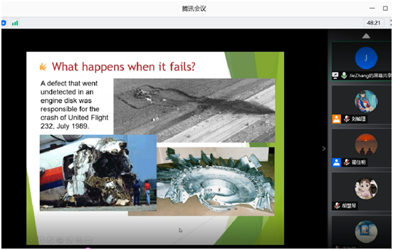 20208111314号,我院“在线暑期国际学堂”——《超声波无损检测》顺利结课。该门课程为第二年续开课程,去年开课学生们反响热烈,今年虽说线上授课,学生们热情依然不减,课后反馈良好。期待明年张老师能够继续为学生们带来如此精彩的课程。