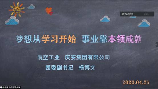 4月25日,理学学院邀请到了理学学院校友、中航工业庆安集团有限公司团委副书记杨博文为我院学生带来团课。杨博文书记结合自己的经历,以“梦想从学习开始,事业靠本领成就”为主题带给了同学们许多的思考与启迪。参加本次会议的有:理学学院联合党委副书记张莹老师、理学学院2019级本科生辅导员孙攀飞老师、理学学院各团学组织干部以及各班班委。